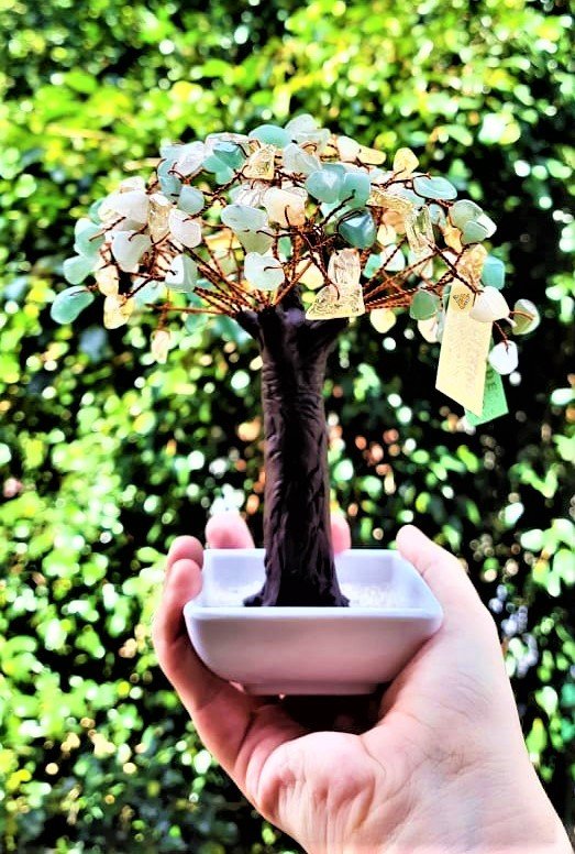 Árbol Sombrilla Pequeña - Jade y Cuarzo Citrino.