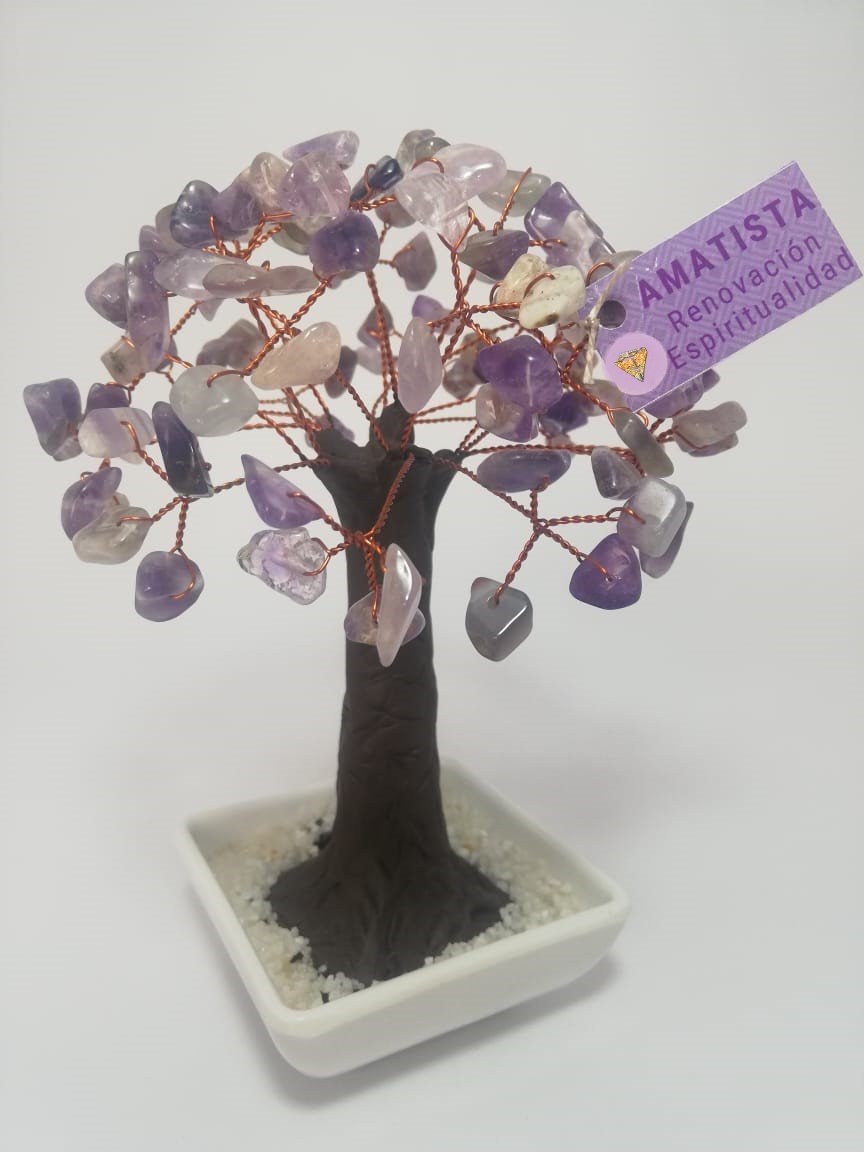 Árbol Grande Matera Pintada a Mano - Cuarzo Citrino - Cuarzo Rosa Y Cuarzo Amatista.
