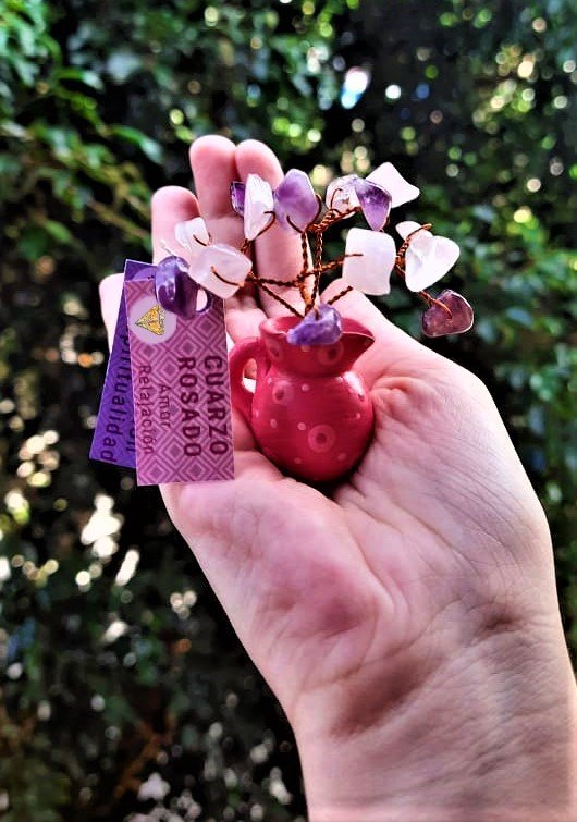 Árbol Mini Matera Pintada a Mano - Cuarzo Rosa y Cuarzo amatista.