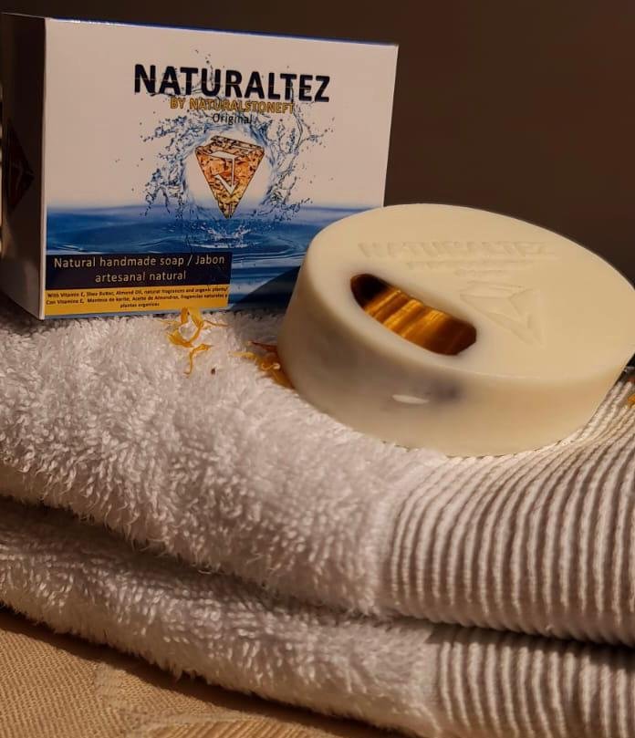 Nuestros NATURALTEZ con cuarzos tienen el propósito de armonizar tu energía Es un jabón de pH neutro elaborado artesanalmente con leche de coco, aceite de almendras, aceite de oliva, manteca de karité y vitamina E. Déjate llevar por las notas de frescura vegetal, aceite esencial de romero, y romero orgánico. Potente anti bacteriano, fungicida, drenante, estimulante, regenerante, antiinflamatorio y descontracturante. Elimina las bacterias y patógenos de la piel, ayudando a su rápida regeneración. Remedio eficaz para tratar la piel con acné y mejorar las imperfecciones como los granos y espinillas. Eficaz para reducir la inflamación de las articulaciones. Buen aliado para mejorar las cicatrices, así como las estría. Se usa para proteger la piel del envejecimiento prematuro, aportándole firmeza, elasticidad y luminosidad. Jabones energéticos artesanales enriquecidos con aceites vegetales, aceites esenciales y plantas orgánicas. Escoge el cuarzo en el boton de whatsApp.